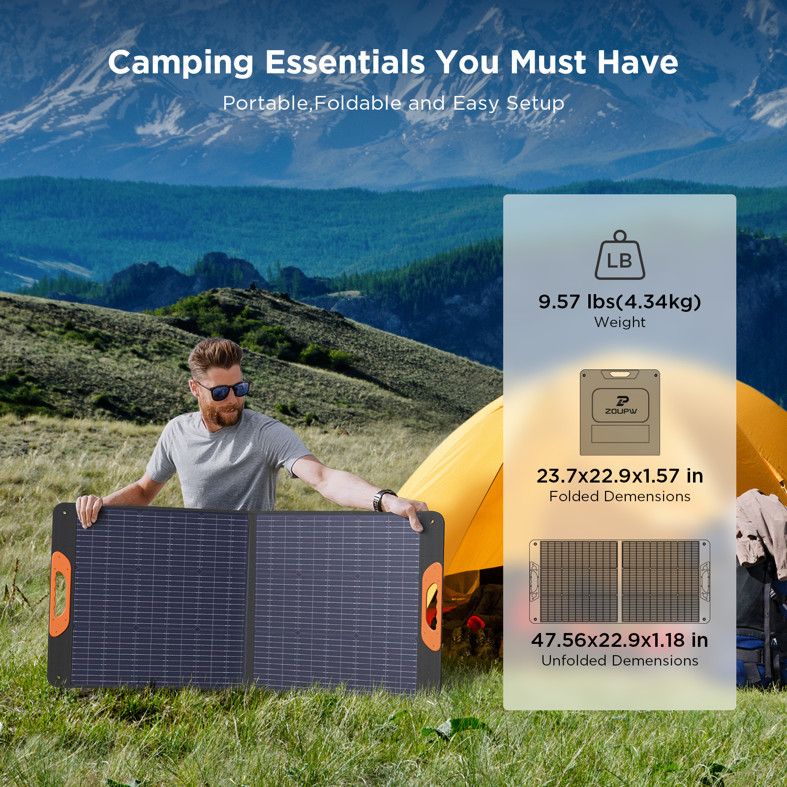 The ZOUPW 110W Fabric-Skin Folding Solar Panel delivers lightweight, reliable power for off-grid, travel, and emergency use. Available in fabric-encased or laminated designs, it features high efficiency, broad compatibility, and built-in safety, with a foldable, quick-deploy form for easy outdoor use.
